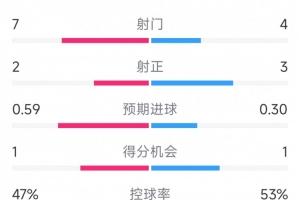 体育资讯4月14日讯 本轮英超曼联对阵纽卡上半场结束,双方暂时1-1战平。以下为双方半场数据对比: