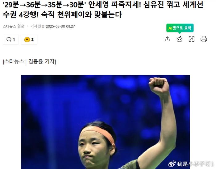 韩媒被打脸!国羽一姐再胜世界第一,安洗莹彻底服气,祝福陈雨菲伤势无碍。2025年羽毛球世锦赛女单半决赛,国羽一姐陈雨菲对阵世界第一,韩国名将安洗莹,赛前韩媒曾表示安洗莹能在30分钟内解决战斗,但陈雨菲用一场胜利做出了最强硬的回应,此役陈雨菲在第二局意外崴脚的情况下坚持比赛,最终连胜两局淘汰安洗莹,成功晋级决赛。