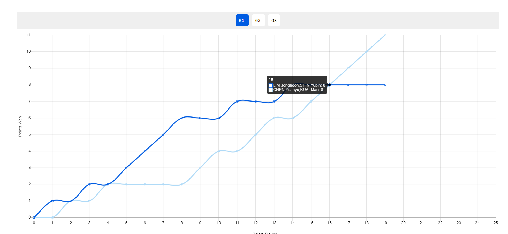 第二局申裕斌/林钟勋又是6-2领先,申裕斌/林钟勋还一度10-8拿到局点,蒯曼/陈垣宇挽救两个局点后实现逆转,这一局后国乒组合士气大振。