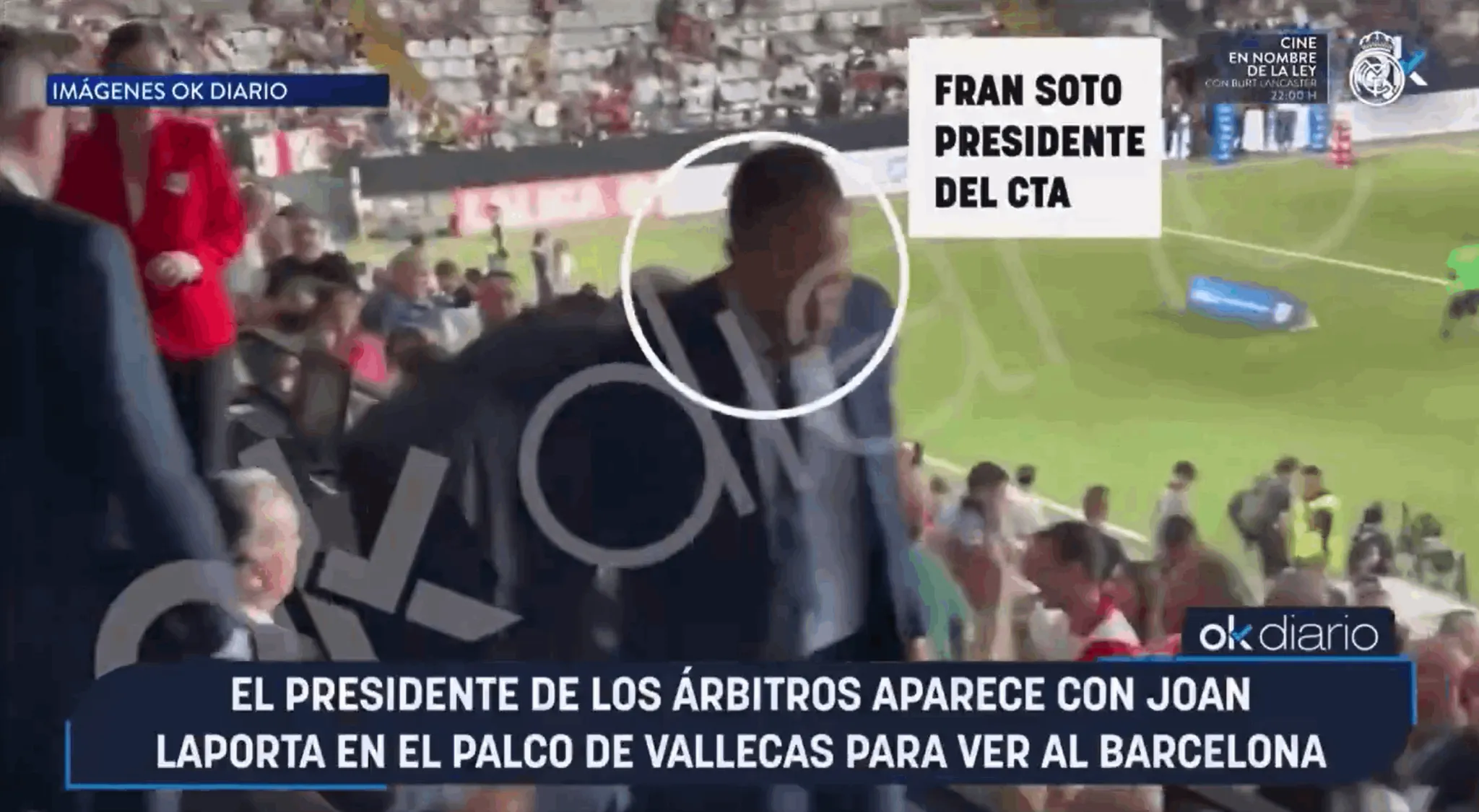 节目还提到,在本赛季巴列卡诺对阵巴萨的比赛中,他被拍到坐在巴萨俱乐部高层附近的包厢里。该场比赛中VAR一度失灵,未能回看涉及亚马尔的争议判罚,最终裁判未判点球。节目认为,这一情况进一步影响了西班牙裁判在国际范围内的形象。
